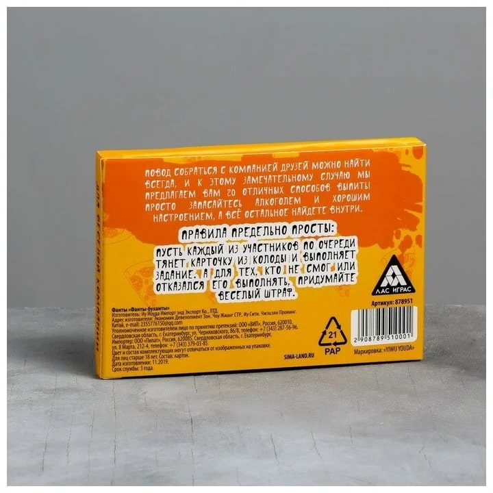 Купить игра для компании "фанты буханты" 20 карт от 100 руб. с доставкой до пункта выдачи в Карпинске. Интернет магазин ДекаМаркет. Оплата при получении.